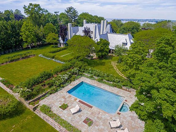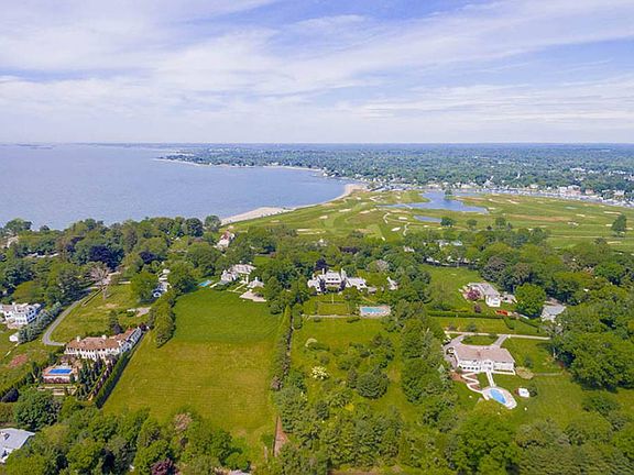 This magnificent 12,000+ sf European-inspired estate sits atop the highest elevation on prestigious Sasco Hill, with private, double lot of 6.5 flat, tiered and rolling acres (2 lots-1015 SHR included in sale). Built exquisitely in 2000, the 50-ft salon and every room is of a scale that harkens back to a bygone era. Uniquely situated, this residence boasts breathtaking vistas of hundreds of acres of sanctuary, coast and LI Sound. Main house features 5 bedrooms, 5 full baths, 2 half baths, 2 offices, 2 laundries, mudrooms, dens, libraries, all-purpose room, 2 of 5 garages and more. Detached 3-car garage houses a 1000+ sf guest suite. Walk to neighborhood beach. Offered below town appraised value.