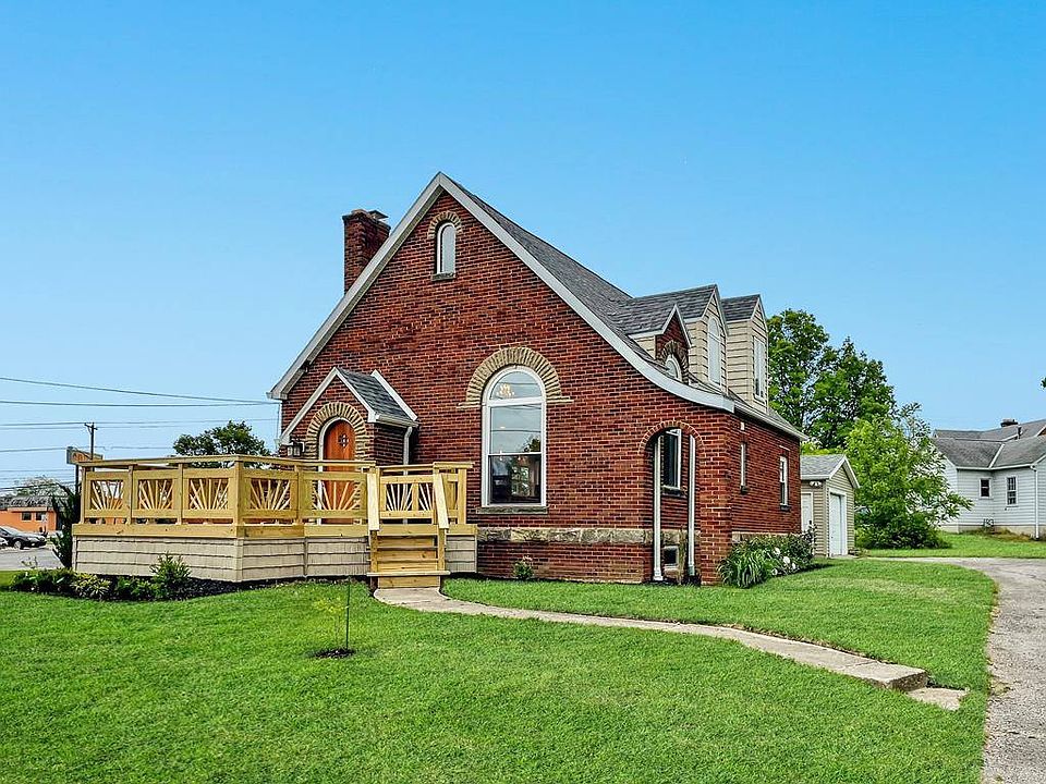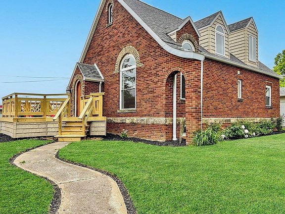 Character defines this well-known brick home which has been redone from top to bottom. As you walk in the custom arched front door, you are immediately drawn to the vaulted/beamed ceiling & arched windows. This light-filled room w/cherry stained bamboo hardwood floors leads into the open living/dining area, kitchen & new half bath w/stackable laundry hookup. The main bedroom is located on this floor w/its own tiled bath. As you walk up the new staircase, the open hallway leads to two bedrooms w/tiled Jack-n-Jill bath. Rounding out the home is a full basement, 1-1/2 car detached garage, & two decks. Most everything is new: roof, windows, plumbing, elect. (200 AMP), tech., insulation, flooring, doors, HVAC, water heater & some appliances. Come see why this beauty should be your next home!