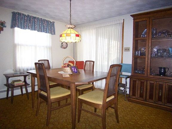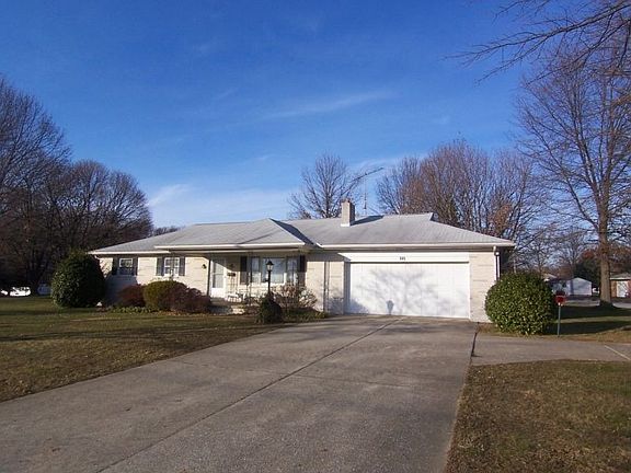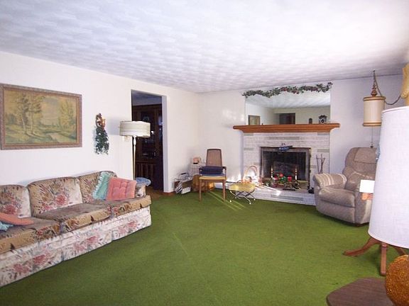 This nice split rock rancher with circular driveway is set on a deep corner lot and has a fabulous view. With lots of possibilities, this solid home could easily be your dream home. Bring some paint, refinish the floors (hardwoods under vintage carpet per seller), and update the eat in kitchen. Good floor plan for easy living. Check it out now! This one will not last! Living room (14 x 20) includes generous-sized living room with carpeting over original hardwood floors (per seller), fireplace and coat closet tucked behind the door. The eat-in kitchen (13 x 18) includes wall to wall carpeting, sliders to the patio, wood cabinets and formica countertops. There is an electric range and refrigerator included. The master bedroom (13 x 14) and bedroom 2 (10 x 12) each include hardwood floors, two windows each, ceiling lights and dual closets. Bedroom 3 (10 x 10) has hardwood floors, a single window, ceiling light fixture and a single closet. The full bath is large for its vintage. It has vinyl flooring, dual sinks, and a tub/shower. A single window allows for natural light. A linen closet is in the hallway. The walk-up attic provides lots of storage space. The finished basement includes a large paneled family room (23 x 12). The laundry room (14 x 14) is adjacent to the garage door access. A second full bath is the basement. The storage and mechanical area (13 x 23) is unfinished and has 11 cinder block coursing high.