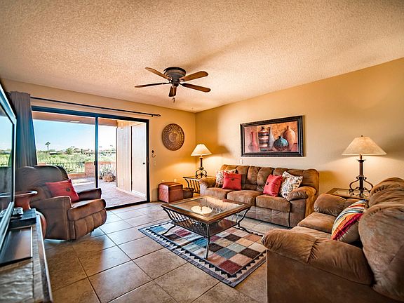 One Year Lease on this Furnished Townhouse (also could be rented unfurnished). Views anyone? Easy care tile flooring leads to the living room to view awesome desert and mountain views through the patio doors. Two large skylights offer radiant natural light to the open dining area. Efficient kitchen gives extra elbow room and the room comes to life under a huge skylight while the nook is the perfect spot for morning coffee and lighter meals. Outdoor living at its finest - just step out to your covered patio with its red brick extension and brick privacy walls. You'll love the magnificent views of the Santa Rita mountains. Whether you watch the sunrise, sunset or marvel at the amazing stars overhead you'll never get tired of this fantastic setting! Owner/Agent. Rental rate is for One-Year Lease minimum. Tenant pays utilities. (home is furnished, but also could be rented unfurnished). Cleaning deposit and cleaning fee apply. GVR available. No Pets. No Smoking.