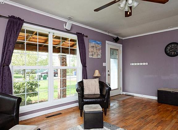 Cheerful updated home. Newer vinyl windows, Pellet Stove, Hardwood Floors, Great Storage Space, Private Master Suite w Private Bath & WI Closet, Sunroom + Office w French Doors, Bamboo Vinyl Allure Floors & BI Office Desk, Indoor Utilities w Storage, Security Lighting, Plum Trees, Raspberries, Storage Shed, Covered RV Parking, Garden. Walking distance school & shopping.