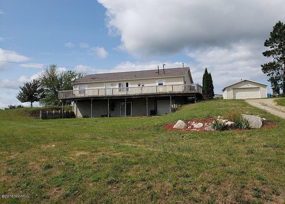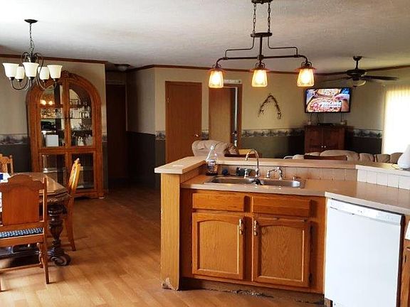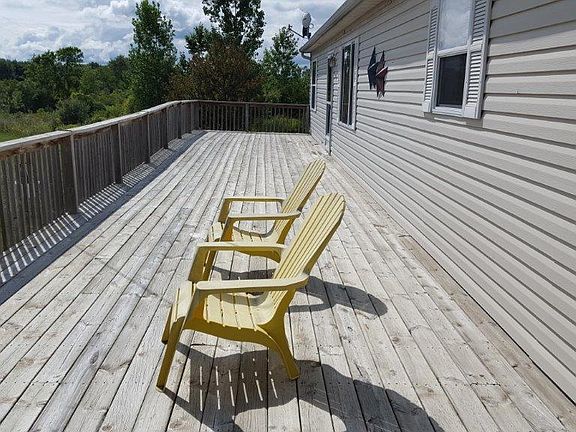 Back on the market! This roomy 3 bed, 2 bath home sits on almost 3 acres of land. The 2005 manufactured home was upgraded to drywall and a normal roof pitch. Master suite with garden tub, double sinks, and separate shower. It sits on a full walkout basement with a garage door on one end for easily unloading wood or corn for an alternative heat source. Property comes with a 2 stall detached garage, a 54 ft. deck, and a ramp.