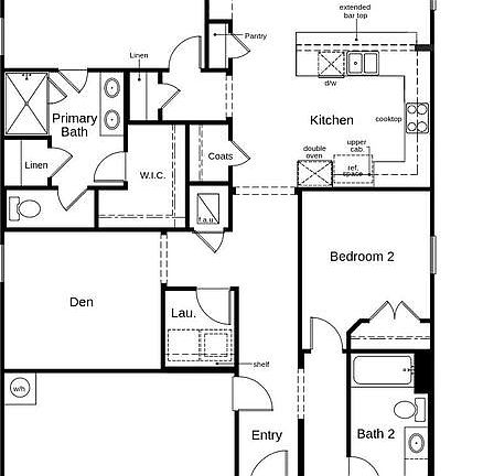 This lovely home welcomes a dramatic entryway. The kitchen offers Woodmont Cabinetry Dakota Shaker panel 42-in. upper cabinets in color Smolder, extended breakfast bar, granite countertop in El Dorado, and Moen Arbor faucet. All upgraded Whirlpool large capacity dishwasher, gas cooktop with griddle, wall mount canopy hood, French door refrigerator, and Smart microwave/wall oven make cooking a breeze. Relax in a true retreat space at the primary bath with a convenient 42-in. shower with tile surround and dual vanity. Sherwin-Williams two tone interior paint in Knitting Needles, a rear atrium door, and upgraded flooring including Shaw carpet and Emser ceramic tile complete the space. Enjoy outdoor living with an included covered patio and gas stub for BBQ grill. Other features include: automatic sprinkler system, soft water loop, network package, wireless security system.