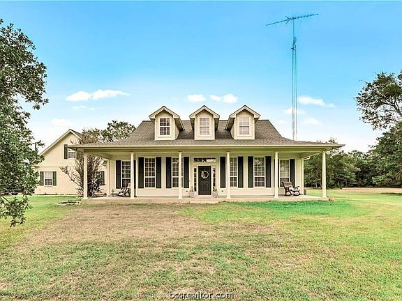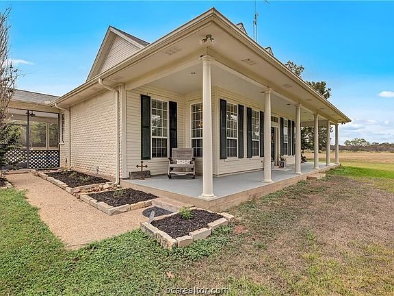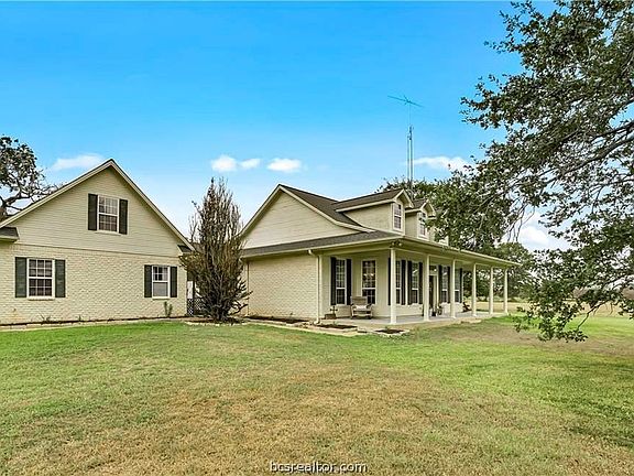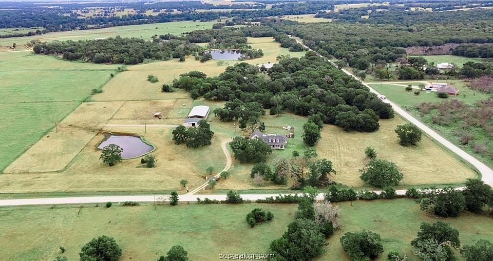 Peaceful country living is minutes away...this beautiful home sits on 15 acres of rolling hills & towering oaks. A classic 3-bedroom, 2-bathroom home with lots of natural light, inviting "agreeable grey" interior paint, & an open concept living area featuring hardwood floors, spacious kitchen with updated cabinets and abundance of counter space for holidays, entertaining or those simply looking to escape the bustle of the city. The oversized master suite features 10 foot ceilings, his & her closets / vanities, soaker tub, & walk-in shower. The split floorplan offers the two guest bedrooms and bath on the front side of the home. The bonus 1/1 garage apartment offers a spacious bedroom suite above the oversized three car garage. Around the property you will enjoy the fire-pit, large outdoor patio / kitchen area, a pond, custom barn, 5000sf covered/fenced arena, & in-ground pool. The 36X48 barn, fully electric, has four 12X12 Priefert stalls, cement slab for 12 ft breezeway and built-in storage / workbench area, insulated roof, finished out tack room & full length covered shed for hay / equipment storage. The land is perimeter and cross-fenced with a small backyard area fenced near the home, which includes a customized chicken-coop and small gardening area. This, amazing opportunity is just minutes to Kyle Field, TAMU and Rellis campuses, shopping and restaurants. It is a must see! Schedule your private showing today!