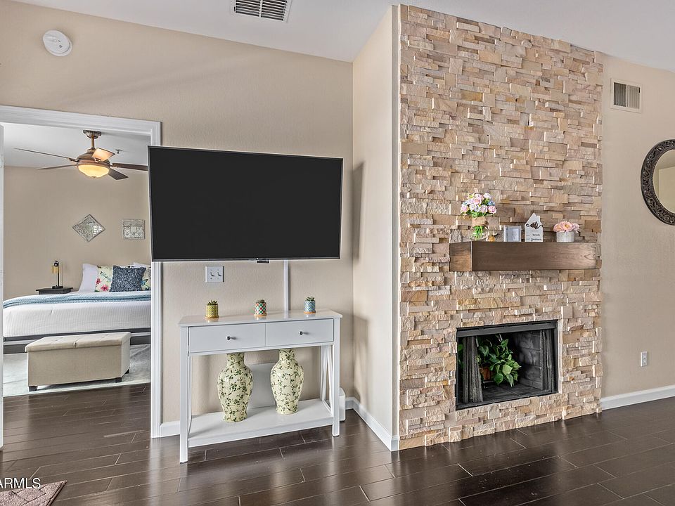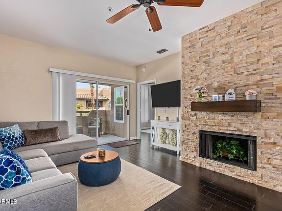 Move In Ready, Absolutely Gorgeous Condo Located In Scottsdale's Shea Corridor! Take in this 2nd Level property's views of the pool while enjoying the many amenities of the neighborhood: heated community pools/spas, pickleball/tennis courts, fitness center, clubhouse, BBQ's, firepits! This 2-bedroom, 2-bathroom single story condo is meticulously upgraded with wood laminate flooring, custom interior paint, custom painted cabinetry w/cabinet pulls, slab granite kitchen countertops, upgraded bathroom countertops, sinks & showers & Ring doorbell! The windows were replaced in 2023 providing high energy efficiency along with a Smart Thermostat! During cooler months relax by your wood burning fireplace in the open concept dining room & living room areas! No issue with storage in this home as both bedrooms offer walk-in closets! Assigned covered parking space w/plenty of visitor parking! HOA covers all utilities except the electric & internet! 90-day minimum rental requirement (to be verified by buyer)! With this prime Scottsdale location, you are just minutes from the 101, Talking Stick Casino, Mayo Clinic, golf courses, shopping and some of the finest restaurants in Arizona! Discover your new chapter today in the Aventura Neighborhood!