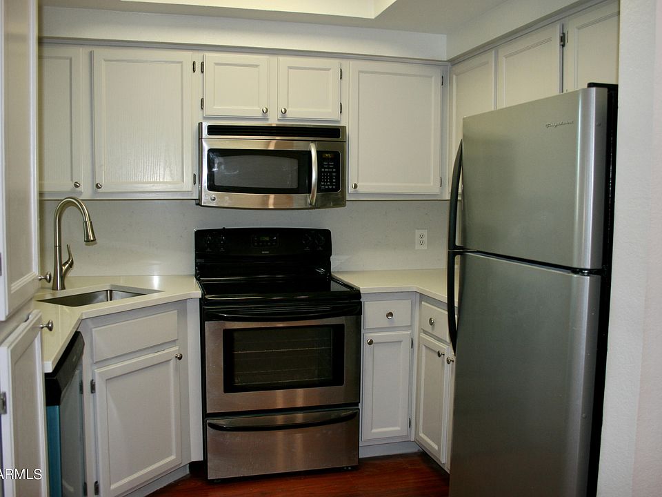 LUXURY+LOCATION. Quiet resort style condo community in prime Scottsdale location features lush landscaping, shady trees, flower gardens, walking paths, barbecues, 3 resort-like pools (2 are heated year round), 2 spas, tennis court, fitness center & club house! REMODELED with open floor plan, cozy fireplace, and a private covered patio to relax in the shade. 2nd floor offers privacy and security. Bedroom has separate patio access and a walk in closet. The bathroom has a tub/shower combo and has been upgraded with quartz counters and new lighting. Kitchen features stainless steel appliances, quartz countertops and opens to the dining room. Includes TV, Full size w/d, Covered Parking! Enjoy close proximity to fine dining, shopping, Honor Health, library, golf courses and the 101 freeway.