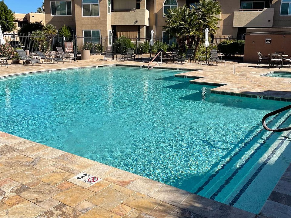 Beautiful 2 bedroom condominium available now. Conveniently located close to the 101 freeway and shopping centers. Spacious, updated in a quiet community with access to fitness center 24 hours a day. Beautiful pools, access to 4 within entire community (spa as well). Covered parking space included in close proximity to unit. Located on 2nd floor shared with one neighbor only ( older single woman, very quiet.) Washer and dryer, brand new COLD AC unit. See photos. 1 year. Broken lease requires 3 months rent.