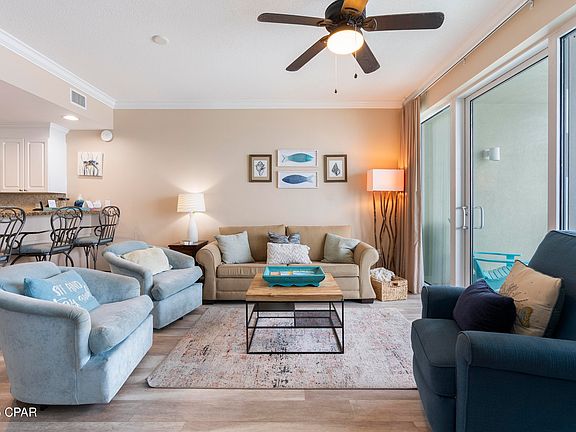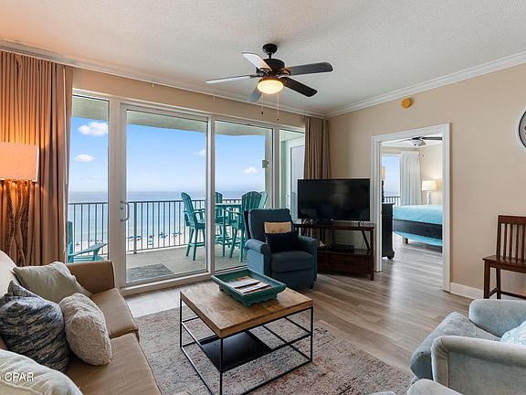 Western oriented 2BR/2BA ON THE 5TH FLOOR. PERFECT ELEVATION - NOT TOO HIGH AND NOT TOO LOW! This one-of-a-kind and rarely available property conjures up images of sun-splashed days of swimming, biking, and relaxing. The 1152sqft 2Bed/2Bath floorplan is super-efficient and lives like a beach house but comes with all the benefits of owning a condo. New Luxury vinyl plans flooring throughout and conveys fully furnished with window treatments and artwork. Boardwalk 509 invites you to lie back, relax, and enjoy panoramic views of the pool, beach, and ocean. Open floorplan and floor to ceiling windows allow for fabulous Gulf and sunset views from the unit's unique, oversized balcony, living room, dining room, kitchen, & master suite, providing the ultimate alfresco living and entertaining environment! Sunset views from this generous, private, ''bump-out'' balcony are a perfect end to a sunny day and beginning to an exciting evening - enjoy both privacy and 180 degree views! The not to high, not too low elevation keeps you connected to the beach experience! MASTER SUITE is front and center on the beach with direct access to the main balcony. Literal wall of floor ceiling glass in the Master offers world class views. Ensuite bath complete with double vanity, garden tub, separate shower, and large walk-in closet. The master suite also opens directly to main balcony. SECOND Bedroom is large and attached to second bath which can be accesses directly from the second bedroom and hallway. LUXURY! COMFORT! CONVENIENCE!! EXCELLENT RENTAL INCOME POTENTIAL. Turnkey income producer! Meticulously maintained and in excellent condition. Enjoy the good life at the Boardwalk Beach Resort with an unparalleled deck of resort style amenities including two levels of parking adjacent to the building (not across the street); beautiful grounds with a pool, spa, kiddie water play area, tiki beach bar, & so much more. Rental income potential is a big drawing card for Boardwalk Beach Resort Buyers. The Convention Center sponsors events that bring guests to Boardwalk Beach & its reputation with the vacationers brings repeat & new guests every year. Boardwalk as a development has a great aesthetic and is located across from a golf course on a palm tree lined boulevard. All measurements & information is deemed reliable but should be verified if important.