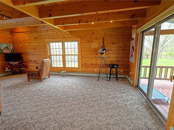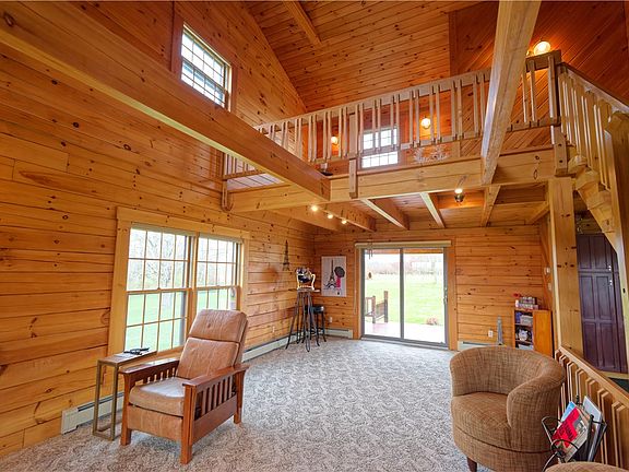 Extremely well maintained log home sits on a breathtaking setting of 28.4 acres of lawn, pasture, and woods perfect for outdoor enthusiasts. Inside you'll find the classic log home charm featuring an open floor plan on first floor with master bedroom suite and loft area on the second floor. Finished basement with two beds and full bath. Outside, a gorgeous back deck overlooks your outdoor oasis. The large 40x30 heated pole barn with 220V electric can easily fit all of your outdoor toys, equipment, and hobbies. If it doesn't, there is a concrete pad beside it for a boat or RV and more covered storage behind! There's also a beautiful 3 stall stable with tack room, hayloft, electric, and water easily accessible to a fenced pasture and loafing shed. Be sure to ask about the significant property tax savings under Clean & Green!