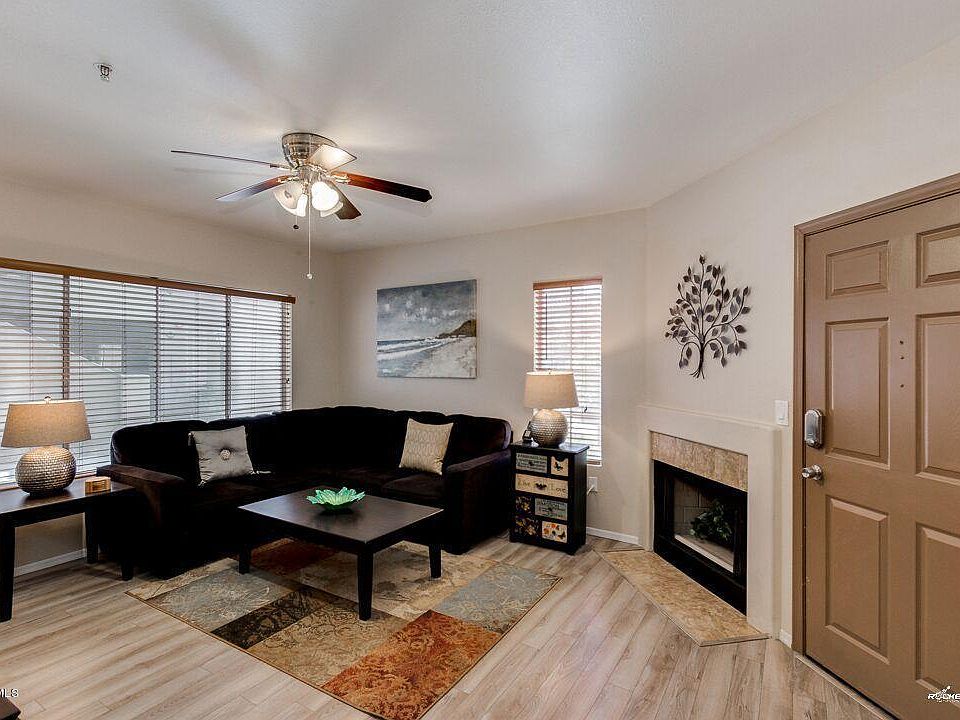 PERFECT location poolside, corner ground floor unit! Enjoy this comfortable and beautifully designed condo in desirable ''Aventura'' in Scts!This upgraded and barely lived in beauty is light & bright with high end laminate flooring and tile thru-out,recently painted a great neutral color,fireplace in living rm,granite ctops in kit and baths, glass tile backsplash,all s/s appl that convey,granite and tiled showers,lrge walk-in closets in both BRs, huge Mbath area,inside laundry w/washer&dryer included!Enjoy sipping your morning coffee on the patio (both Kit and MBR exits) as you watch the full panorama of the rising sun.Perfect for winter visitors, 1st time buyers or as an investment property. This popular community includes 3 pools, 2 hot spas,BBQ's, lighted tennis court, workout facility, Resort Clubhouse with business area. Premium location near Talking Stick Resort, N Scottsdale shopping, dining, golf and entertainment. Furnishings are also for sale. This is a place you'll be proud to call home.