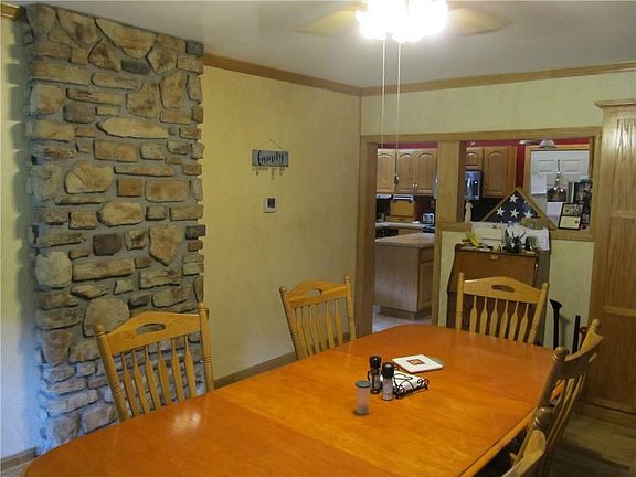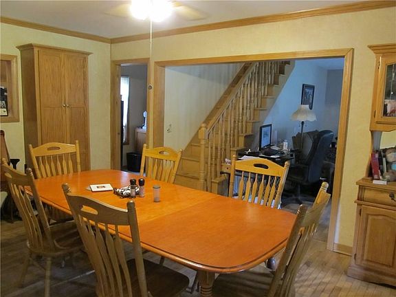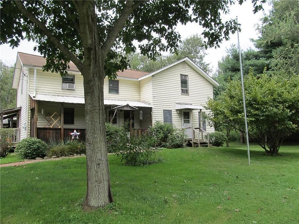 Beautiful 3 bed 1 bath farmhouse in the country! Hardwood floors throughout most of the house. Pellet stove in living room. Laundry off the Kitchen which has vaulted and beamed ceiling with island. Partial finished basement, also partial fenced yard. Backyard has a pavilion with small patio for entertaining.