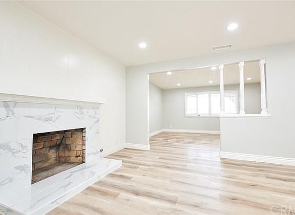 Remodeled single story home in Fontana. 3 bed and 2 bath all new paint with recessed lighting, and luxury vinyl floors. Fireplace in living room. New white kitchen cabinets, Quartz countertops, and subway tile backsplash. New carpet in bedrooms and tile in bathrooms. Backyard for entertaining. Central air and heat. Attached garage with lots of parking. Close to parks, shopping, and freeways.