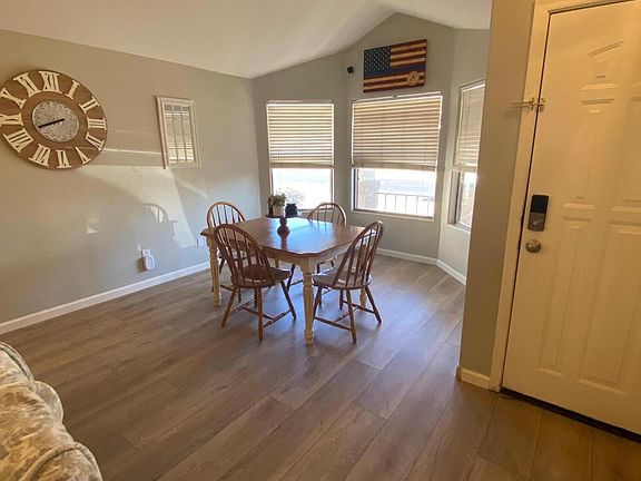 WELCOME HOME! This family friendly home is situated directly across the street from a lovely small park. Your new home has many extras. *Upgraded laminate flooring throughout the house *Freshly painted kitchen cabinets with new hardware *All new stainless steel appliances *Subway tile backsplash *New sink and faucet * New island with granite top *Upgraded lighting fixtures and fans *New toilets in both bathrooms *Desert landscaping in front yard *Upgraded Astroturf grass and patio mister system in backyard *Primary bedroom suite has a large walk-in closet and bath has double sinks and separate shower/tub. With it's open floor plan and generous living areas, your new home becomes the perfect gathering place for family and friends. WELCOME HOME!