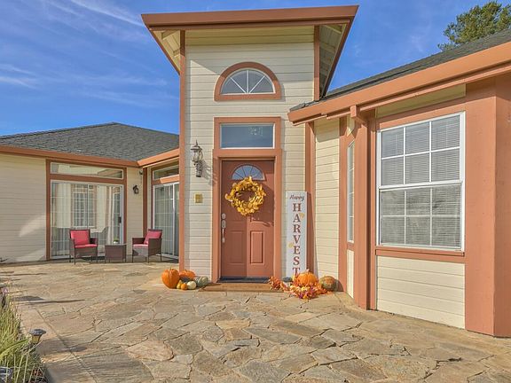 Beautiful single story 2,532 sqft home sits on a 1.77 acre lot nestled in the desirable Grey Eagle Estates. Stunning open floor plan with plenty of windows that fill the space with natural light. Freshly painted interior and new laminate wood flooring. The inviting living room has vaulted ceilings, gas log fireplace, recessed lighting, large windows and sliding doors. Off of the living room and through the arched entryway, you will find the formal dining room. The open kitchen features granite tiled countertops, two ovens, two sinks, breakfast bar and more. The breakfast nook is off of the kitchen, has built-in storage and gives you access to the yard. Large primary bedroom has sliding doors to your patio area and large windows for you to relax as you enjoy the views of beautiful hills. The primary bath features double sinks, large jetted tub, glass shower stall and large walk-in closet. Oversized 2 car garage with bonus room/office space for you to work from home.