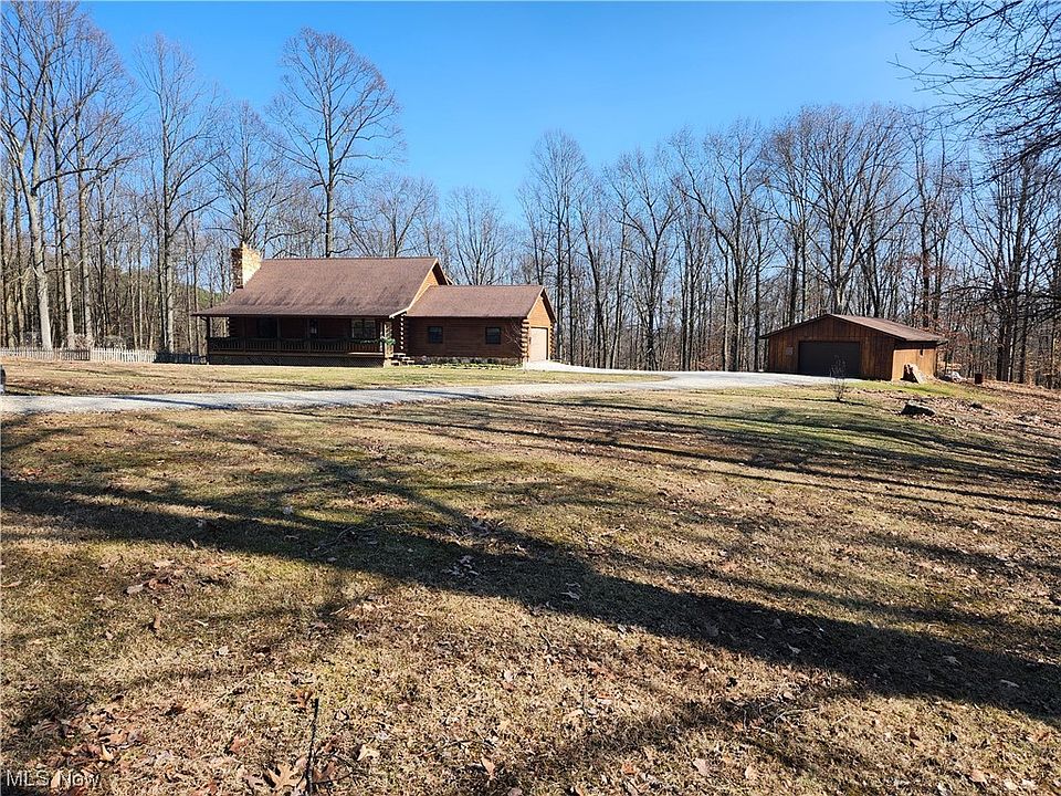 Welcome to this custom-built cedar log home nestled on a private, peaceful country setting with just over 2 acres and only 2 minutes from Atwood Lake! The interior boasts an open concept, all new quality flooring, and a new floor-to-ceiling stone fireplace. The first floor features a spacious kitchen with Schrock cabinets, Corian countertops, stainless steel appliances including a double oven, dining area, pantry, bedroom and full bathroom. The loft consists of a large open area and a bedroom with a large walk-in closet. Additional living space could easily be added in the full, walk-out basement that features a full bathroom, a partially finished bedroom, and wood burner. This property boasts a 2-car attached garage plus a detached oversized 2-car garage/workshop. Relax and entertain on the front and back porches while spending endless hours surrounded by an oasis of serenity!