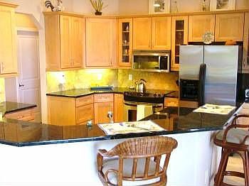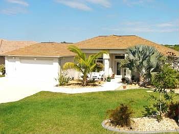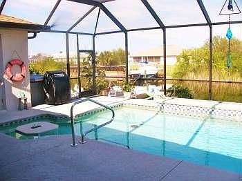 Beautiful custom built home with UPGRADES GALORE. One of kind 3 Bedroom/2.5 Bath with additional office/den and 3 car garage with a front and rear exit.Drive up to this wonderfully landscaped home with mature trees , fountain and curbing. Walk thru thedouble glass doors to the great room with tray ceiling ,recessed lighting and 20 inch tiles. The kitchen features solid wood cabinets with above and below lighting. Granite counter tops and stainless steel appliances. Full extension anti-slam drawers. Adjacent dry bar wine wine refrigeration. TV set in living room conveys. Home wired for surround sound. Master bath features dual sinks, walk thru tiled shower with seating, dual rainforest shower heads, and glass blocks for lighting. Seperate hot water for master bath. Master bedroom has french doors to pool area.Heated pool with sheer decent, solar cover, auto cleaner, and table in pool with jets, upgraded pool equipment. Ouside shower and tiled half bath with pedestal sink. Oversized 2 level deck/gazebo for boat docking. 3 car garage with end unit having pass thru to rear with concrete slab. Built in shelves and attic access> Second acess in master bedroom. Two additional bedrooms with plant shelving and double windows. Office/den has hard wood floors and french doors. Over $16000 worth of hurricane high impact windows. Outside lighting and inground sprinkler system. DO NOT PASS UP THIS GREAT HOME !!!