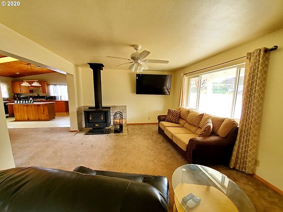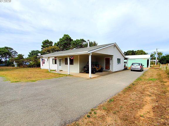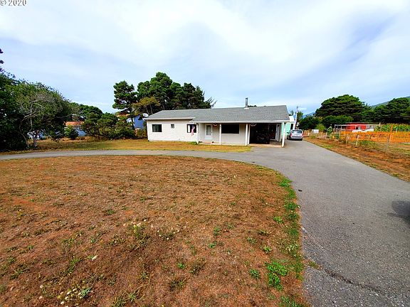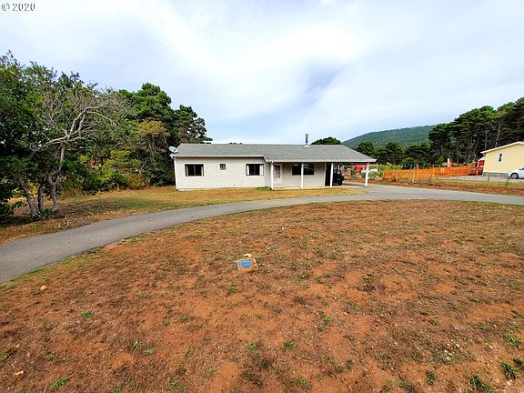 The complete package offering a paved circular driveway, fenced yard, private deck with sunken spa, custom barrel sauna, huge shop with 220V and loft, convenient carport with kitchen entry, Chicken coop, plenty of parking for all of your toys too! Price reflects a reduction for flooring and some minor work. It's just around the corner from the country store and post office, a few blocks to pristine beach and ten minutes to Gold Beach. Affordable and ready for you to put your stamp on it!