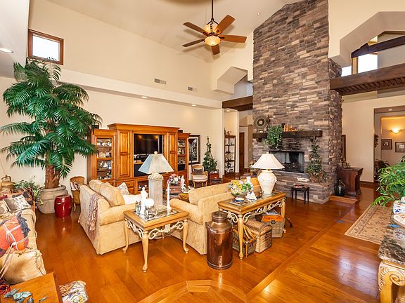 - Interior Features: Ceiling Fan(s), Eat-in Kitchen, Fireplace-Gas, Kitchen Island, Live on One Level, Master On Main, Raised Ceilings 9+ft, Smoke Detector(s), Walk-In Closet(s), Wash/Dry Connection, Beamed Ceiling, Counters-Granite, Formal Dining Area, Skylight(s), Central Vacuum, Utility Sink, Jetted Tub, Garage Door Opener(s)