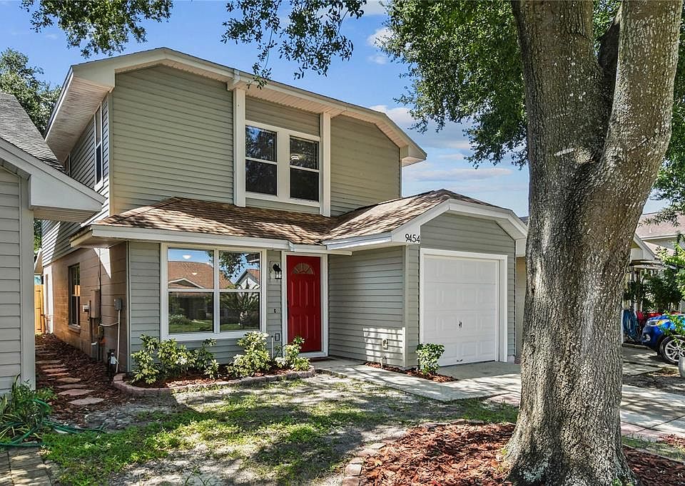 Affordable luxury! This impeccable, spacious and energy efficient 3 BR/2.5 BA home has just been updated to reflect the latest in tasteful home décor. The light and bright newly painted interior has all new contemporary LED fixtures, all new upgraded stainless steel appliances, granite kitchen countertop, new laminate flooring in the living and dining areas, beautiful genuine wood floors on stairs and throughout second level, new LED ceiling fans on lower level, new garage door and opener, new cordless blinds on every window, even new doorknobs throughout. This energy efficient, well-shaded home includes double pane windows and a double pane French door with built-in blinds leading to the enclosed porch for low electric bills. All bedrooms are spacious, including the 18’ x 12’ primary bedroom with walk-in closet and large master shower with seating area. Use the 23 X 10 enclosed porch with vinyl windows as an extra room for TV, playroom or additional eating area. The substantial backyard is fully fenced for privacy to make it your own and it has potential for additional parking in the rear. The inside laundry room includes a washer and dryer for your convenience. New A/C in 2018, and new roof in 2016. Citrus Oaks community association includes a lakefront pool and clubhouse. What more could you ask for? Conveniently located near restaurants, shopping, major highways, downtown Orlando, downtown Winter Garden, and the attractions. Don’t wait- come see this captivating home before someone else steals it away!