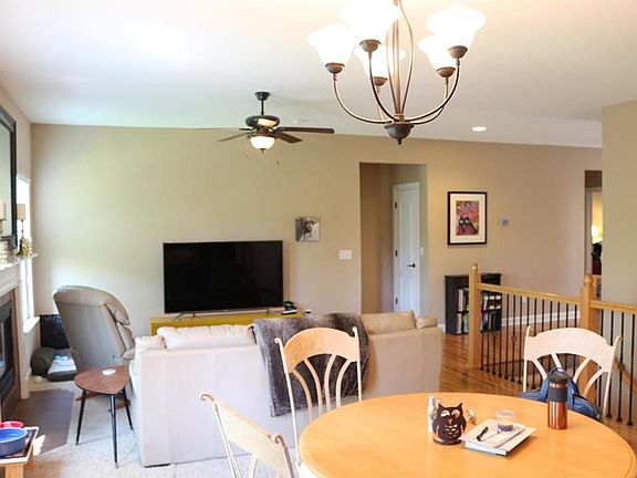 Open plan with 2 large living areas-each with access to outdoor living! Great lot overlooks trees providing tons of privacy and a great view! Gorgeous custom cabinets and a walk-in pantry. Move in ready with a neutral color palette throughout! Main flr master boasts a large walk-in closet, double vanity and jetted tub. Lower level has additional space for storage as well as a huge family room with fireplace that walks out to the patio! Walk to the neighborhood pool! Convenient location just minutes from hwy access!