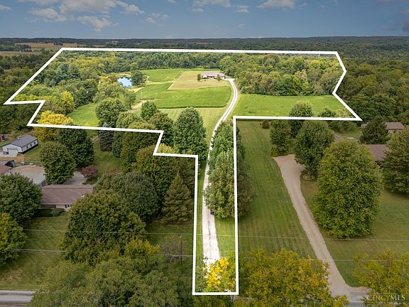 THIS is the RANCH you have been waiting on;secluded more than 950 ft. off the road, beautiful setting on 20.85 acres just minutes from I74.Custom Decker built home in 2016,nicely appointed with open floor plan & move in condition.View the 1.5 acre pond from the covered back patio. This home is 5 bedrooms,3 full and one half bath.Low maintenance construction:entire home done in brick,stone & vinyl accents.Over 2700 finished sqft, absolutely could not be rebuilt at this price even if you found the lot. 60x31 metal pole barn w/poured floor was existing to the property, has its own AG meter and an adjacent 94 x 44 open sided timber style barn is more suited for 4H animals.Lots of possibilities.