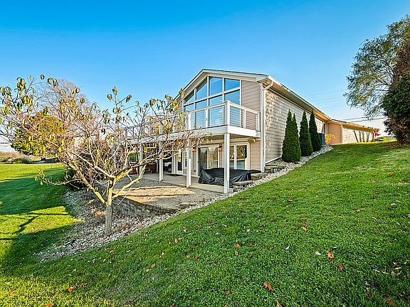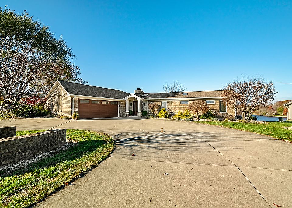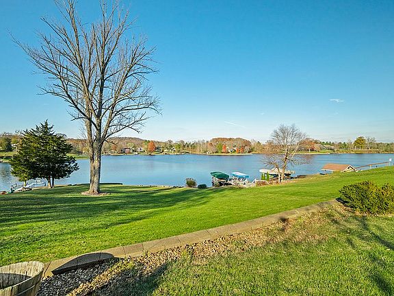 Discover this exceptional lakefront property in a highly desirable location! Nestled along a peaceful shoreline, this charming lake house offers a tranquil escape from the everyday hustle and is the perfect combination of comfort, style, and natural beauty. With breathtaking, unobstructed views of Harrison Lake, this 4-bedroom, 3-bathroom ranch home boasts an open, airy layout with plenty of room for both relaxation and entertaining. The main living areas are flooded with natural light, enhanced by large floor-to-ceiling windows that frame the picturesque lakefront setting and ever-changing vista, while the double-sided fireplace adds warmth and allure to both the kitchen and dining area. Relax on the expansive back porch that provides an unrivaled vantage point of rolling hills that transform with the seasons over expansive lake views. The walkout basement is complete with both a wet bar and custom black walnut bar, making it ideal for hosting gatherings or enjoying a quiet evening by the water. Whether you love boating, fishing, or simply unwinding in a scenic setting, this lakefront home offers the lifestyle you've been searching for.