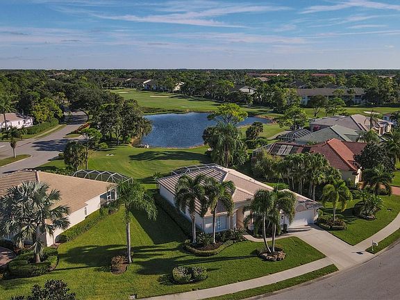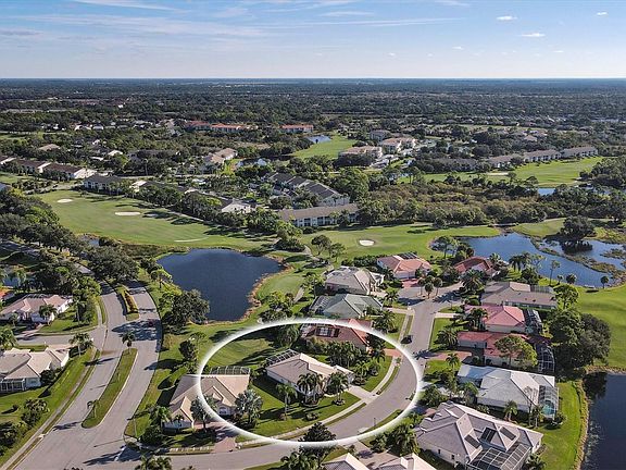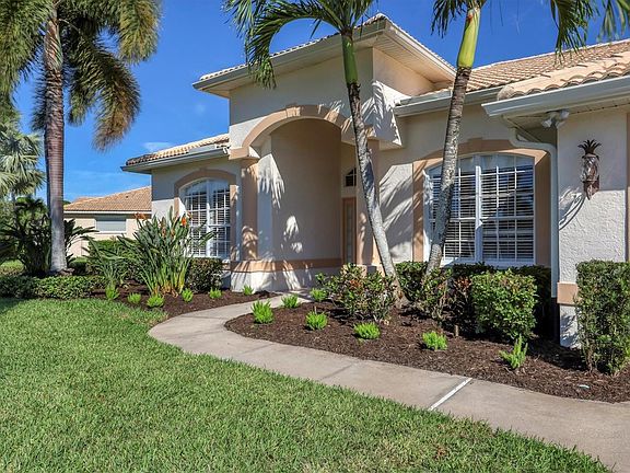 Please submit Highest and Best offer, along with proof of funds or pre-qualification letter, deadline is Noon, Tuesday, November 9, 2021. Why build new when you can buy this pristine home that looks like a builder's model with many upgrades, both inside and out? The curb appeal will capture your heart from the minute you pull into the driveway. The landscaping has been recently updated with new shrubs, outdoor lighting and fresh mulch. The exterior of the house was freshly painted this fall. When you enter the front door you are greeted by neutral freshly painted walls and porcelain tiles throughout. The kitchen boasts solid wood cabinets, with under cabinet lighting, many large drawers for storage, a center island with seating for four, granite counters and reverse osmosis at the sink and refrigerator. The appliances were replaced in 2015 with upgraded custom panels on the Bosch dishwasher and GE refrigerator. The kitchen opens to the large great room with 2 sets of pocket sliding glass doors that open onto the lanai, perfect for indoor-outdoor entertaining. The lanai has stunning views of the golf course and pond and has luxurious travertine tiles, a generous covered area and plenty of space to lounge by the pool or entertain guests. The master suite is spacious with his and her walk-in closets, sliding glass doors to the lanai and a spectacular master bath. There is a double sink vanity with granite and floating mirrors, as well as a separate makeup vanity, huge walk-in master shower has a frameless glass wall and 6 different showerheads, including a ceiling mounted rain showerhead. The den is being used as a formal dining room. The guest suite is spacious and can be closed off for privacy with a pocket door. The bedroom is light and airy, with a large closet and an adjoining fully updated bathroom. The office is being used as a third bedroom and accommodates 2 twin beds or a queen bed and dresser. There is a separate laundry room next to the garage. The garage is a car lovers dream, with epoxy floors and storage cabinets. Extras include ceiling fans, plantation shutters, custom window treatments, landscape lighting and more. Stoneybrook Golf & Country Club has an Arthur Hills designed 18-hole golf course, Pro Shop, full service restaurant with indoor and outdoor dining, fitness center, pool, lighted Har-Tru tennis courts, bocce and nature trails. Located adjacent to the Legacy Trail and close to restaurants, shopping, Nokomis and Siesta beaches. Buy a house anywhere...buy a lifestyle at Stoneybrook. Security cameras on property.