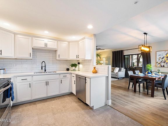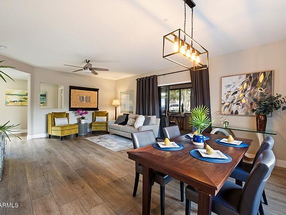 This beautifully updated condo in the sought-after gated community of Ladera Vista has everything your buyer could want! Remodeled in a modern gray and white palette, it features updated fixtures, lighting, cabinets, countertops, paint, wood-look flooring, and carpet in the bedrooms. The stylish kitchen boasts stainless steel appliances and a pantry, while the split master suite offers private patio access. Bright, open bathrooms include updated shower surrounds. This unit also features a new HVAC, all-electric appliances, and a stackable washer/dryer. The bonus room/patio adds charm and extra living space perfect for enjoying the Arizona weather. Just steps from the community pool and spa, with easy access to the 101, plus fantastic dining and shopping nearby. This is a true gem!