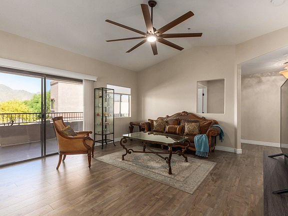 Fantastic upgraded and move-in ready unit in the heart of Scottsdale! The ENTIRE unit offers stunning mountain views of the McDowell Mountains. Upon entering this home, you are greeted with new soundproof hardwood flooring, vaulted ceilings and split floor plan. The kitchen boasts clean white cabinetry, granite countertops, appliances, tiled backsplash, plant shelving and recessed lighting. The bedrooms offer plenty of room for sleep, study and/or storage. LARGE patio is a great space for relaxing or entertaining with friends/family. Upgrades include new carpet, sound proof tile flooring(HOA Approved), remodeled bathrooms, crown molding, 5'' clean baseboards, new water heater, custom blinds, storage on patio, fans/lighting and new plumbing in showers and kitchen.
