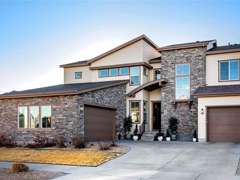 Step into modern luxury with this 6-bedroom, 6-bathroom modern masterpiece in Candelas, Arvada. Built in 2015, this 6,024 sf home sits on a large corner lot bordering open space and trails right by Three Creek's K-8. A grand sitting room off the foyer is perfect for entertaining. The home boasts soaring ceilings and expansive windows that fill the space with natural light. The great room features a stunning fireplace facade. The chef’s kitchen is a true showpiece, designed for both function and style. Featuring a massive center island with bar seating, granite countertops, and custom cabinetry, this space is perfect for hosting gatherings. A massive walk-in pantry and mud room provide ample storage, while the open layout seamlessly connects the kitchen to the dining area and great room, creating an inviting atmosphere. A main-floor bedroom with an ensuite bath is ideal for guests. Upstairs, the primary suite features mountain views, a spa-like five-piece bath, and separate his and her walk-in closets. Two additional bedrooms each with walk-in closets and their own full bathrooms and a loft living area complete the second floor. New upstairs carpet! The fully finished basement includes a kitchen bar (with fridge, dishwasher, and microwave), a stadium seating home theater, a living area with ample space for a pool table, two conforming bedrooms, a ¾ bath, plus a storage room and under-stairs storage. Outside, the xeriscaped backyard features a covered patio with a wind-sensing retractable awning. Energy-efficient with an owned supplemental solar system and dual-zone climate control. Parking includes an oversized two-car garage plus a separate one-car garage with an EV charger, both with epoxy-coated floors and professionally-mounted ceiling storage. Walking distance to Three Creeks K-8 and zoned for Ralston Valley High School. Close to the swim and fitness center, parks, trails, Denver, Golden, and Boulder. Luxury, location, and lifestyle!