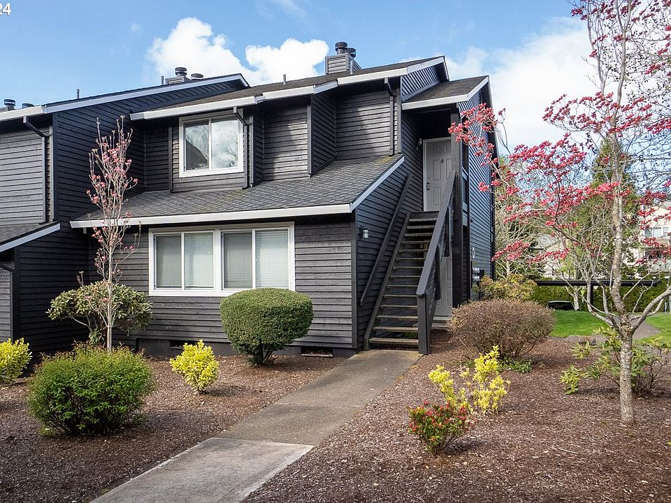Beautiful upper level condo in the sought after Murrayhill area! Open concept floorplan with soaring vaults providing an abundance of natural light. Move in ready home with fresh paint! The spacious family room leads to a covered balcony, perfect for enjoying your morning coffee. This condo offers a spacious primary bedroom with a large walk in closet. In unit laundry with washer and dryer included. Exterior painted in 2022. New comp roof in 2018. Great location directly across from the amazing neighborhood amenities including a pool, hot tub, fitness center and more! Water, sewer, trash and exterior maintenance included in the HOA dues. Very well run HOA. Great location nearby Progress Ridge and Murrayhill shopping, dining and entertainment.