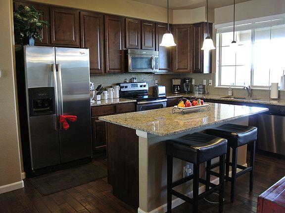 As good as new 2 Bedroom town home in Clocktower/Town Center. Upgraded Finishes! Check out the spacious and open kitchen, featuring gleaming hardwood floors, slab granite counters, and pendant lighting, plus breakfast bar seating and an eating nook. Includes Upgraded 42" Knotty Alder cabinets, Stainless Steel appliances, upstairs laundry. 2 car attached garage and a cozy gas log fireplace for those chilly nights. 2 covered balconies and a large front terrace. Great location! Walk to pubs, Civic park (playground and summer events), Farmers market, Shopping center, Grocery store and fast food. Many amenities! Miles of back country trails for cycling, hiking, mountain biking, snow shoeing & running. There are 4 recreation centers w/ many programs for kids and adults. Indoor & outdoor tennis courts, basketball courts, stationary cardio machines, weights, yoga classes, indoor/outdoor soccer, spin classes, baseball & soccer fields & hockey. Grocery stores & Restaurants at your finger tips.