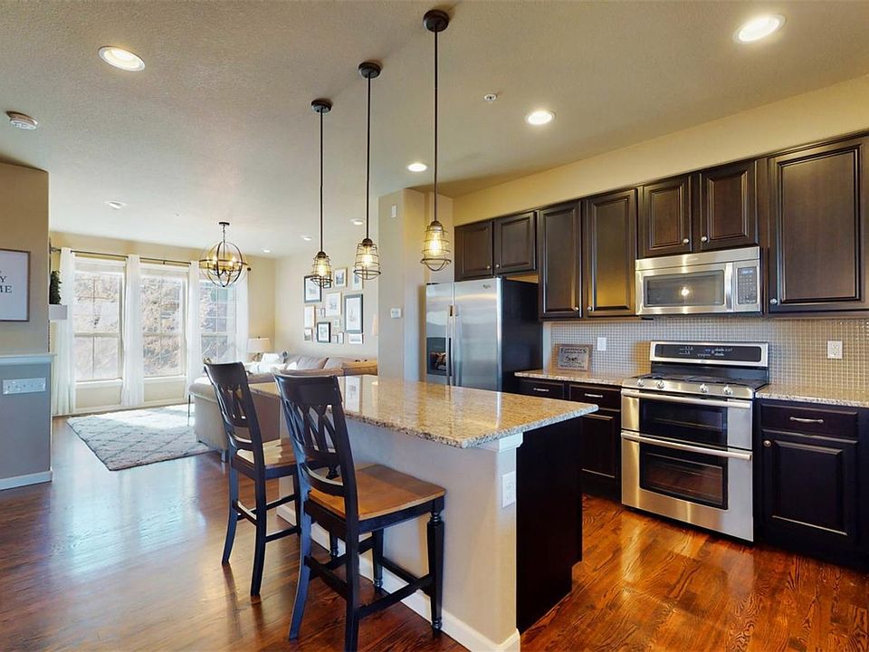 Like new 3 bed 3 bath town home in highly desirable Clocktower townhomes in Highlands Ranch. Meticulously maintained, this townhome boasts granite countertops and beautiful red oak hardwood flooring on the main level. A private deck/patio at the back of the house gives great panoramic views to the north and west. Plenty of storage on the lower level and an attached two car garage. Association fees cover the big stuff, and no yard maintenance. Carefree living at it's finest in beautiful Highlands Ranch!