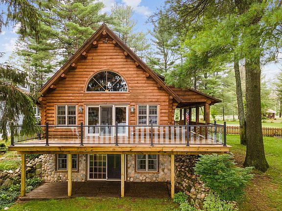 All the feels of Northern Michigan come with this Custom Log Home Chalet on All-Sport Heart Lake just outside Gaylord. Used year round with a 3rd Bedroom downstairs, the home sets up nicely for seasonal enjoyment as well. Close proximity to walking and snowmobile trails, area attractions of golf, ski and downtown shopping and dining, and the beauty of Heart Lake make this an attractive offering. Expansive yard allows for both privacy and room spread out, and the sandy frontage is complimented by a built in dock platform and space to park the boats and toys. Main floor living with views from the loft and the private front deck, and a covered side porch for those days in the shade. This beautiful log home is vacant and ready for the next owner, call today to arrange your private tour!