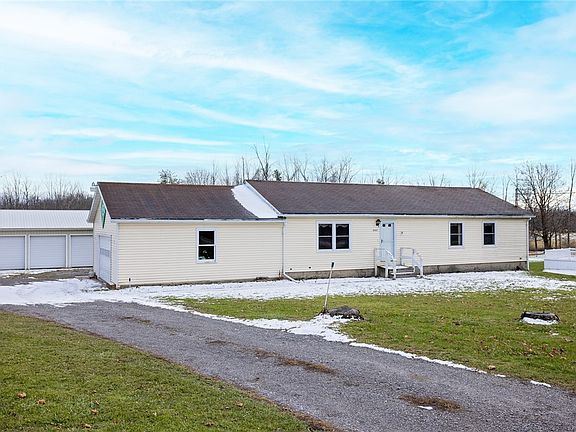 Welcome to this beautifully designed 3–4-bedroom ranch-style with a full basement for storage and workshop. Offering the perfect blend of comfort, convenience, and versatility. Situated on a generous 2.4 lot, this home boasts a well-thought-out floor plan, ideal for family living or those who appreciate easy, single-level living. Extra bedroom is used for laundry room currently 2.5 attached garage with an entrance to the basement. Whether you're an enthusiast of outdoor hobbies, need extra storage, or are looking for a workshop, this 32x36 pole barn with 3 large overhead doors that offers ample space to meet your needs. The open layout is perfect for vehicles, equipment, or projects. 30 Amp electric for a camper.