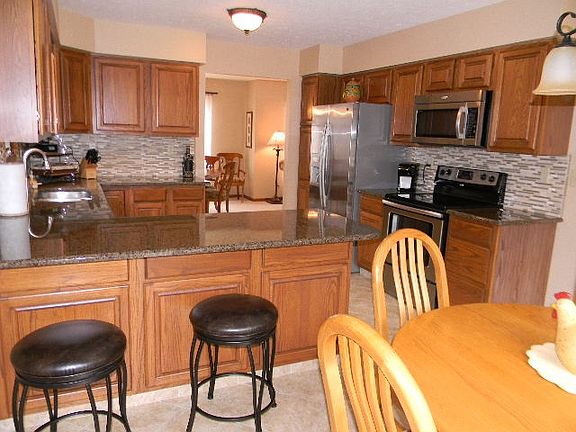 Impeccable Roscoe ranch! Gleaming hardwood floors, full wall fireplace, 6 panel doors, first floor laundry. Formal living/dining room. Great room. Granite countertops and snack bar, bayed eating area, upgraded stainless steel appliances, glass tile back splash. upgraded lighting, sliders to deck, overlooking professionally landscaped yard that backs up to forest preserve. 90+ GFA. Kenteco water softener, 50 gallon hot water heater. New roof and kitchen appliances, furnace and C/A new in 2011.