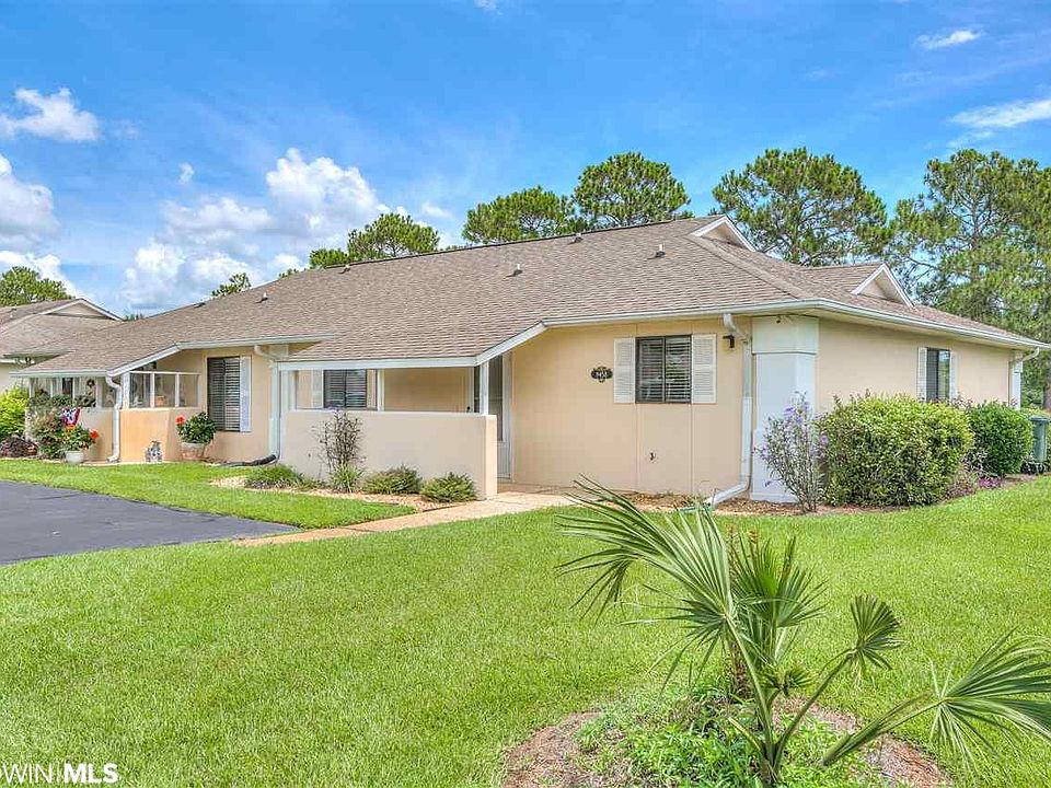 Open floorplan, centrally located and just the right size. Great permanent residence or 2nd home. In the Glenlakes Golf Course subdivision (membership separate), you can be close to golf, OWA, shopping and beaches. 2 bedrooms and 2 baths - HOA fee of $100 includes lawn maintenance and water. Seller already purchased and will leave for buyer, new countertops and fixtures for both baths. Fabulous GOLF COURSE VIEW! Plus there is a Florida room and covered patio - ONE YEAR HOME WARRANTY PROVIDED.