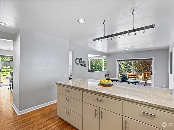 Discover your perfect urban oasis with this secluded home in the heart of the city, with 32 acres of trails in your backyard and major retail within walking distance. The open floor plan floods the home with natural light, creating a bright and inviting atmosphere. Enjoy your mornings or evenings on the spacious deck off the family room, overlooking the serene greenbelt. The private yard is a tranquil haven, perfect for relaxing Seattle summer evenings. The open kitchen flows into the family and living rooms, ideal for entertaining. The second-floor primary suite features a 3/4 bath and walk-in closet with a stunning view of the greenbelt. 2-car attached garage and freshly updated interiors with new carpet and paint.