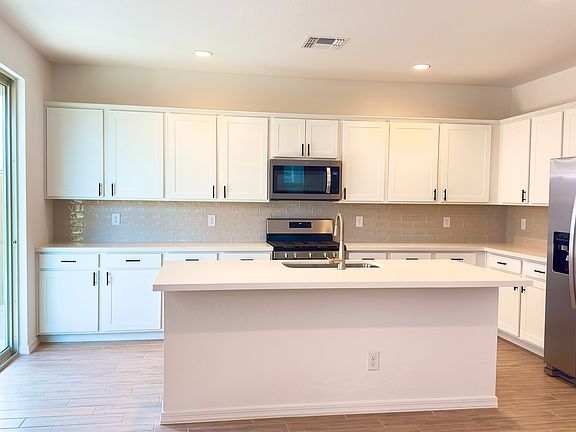 Located at Eastmark in Mesa. Built in 2024, 4 bedrooms + loft + 3 baths + 2 car garage. The first floor has a full bath and bedroom downstairs, it is a perfect place for guests when they come and visit or a quiet office space for working from home. Spacious great room! The kitchen boosts today's trends with beautiful quartz kitchen counters and sparkling stainless steel appliances including a gas range and refrigerator, tons of cabinets, tiles backsplash. In addition to four bedrooms and three full baths, there is a spacious loft upstairs for a second living space. The primary bedroom is spacious with a private bath with a large walk-in closet and not one but two linen closets. Both secondary bedrooms have walk in closets. Blinds throughout as well as 8 foot doors. Luxurious plank tile is featured in all common areas. This home boosts remarkable comfort, energy efficiency and environmental sustainability! Low maintained back yard with pavers and turf. HOA maintain the front yard. Located in the national rewarded master planned subdivision, Eastmark has the best of amenities include: over 40 parks to count, clubhouse/Rec Room, a community heated pool, splash pad, basketball courts, sand volleyball courts, ball fields, dog park, sustainable farm where you can get fresh veggies, award-winning Handlebar Diner, extensive biking/walking paths throughout, catch & release fishing pond, frisbee golf course, a skate park, dog park, disc park and so much more! The Point' shopping center, and top schools - BASIS, Sequoia Pathfinder Academy, Gateway Polytechnic Academy, and Eastmark HS. The community home has lots of events throughout the year from Easter parties to Halloween parties to free concerts in the park and food truck nights and so many more events. All this close to freeways and shopping. Easy access to the 202 and 24 Freeways and near by shopping. Truly do not let this pass you up! Call for a quick response!