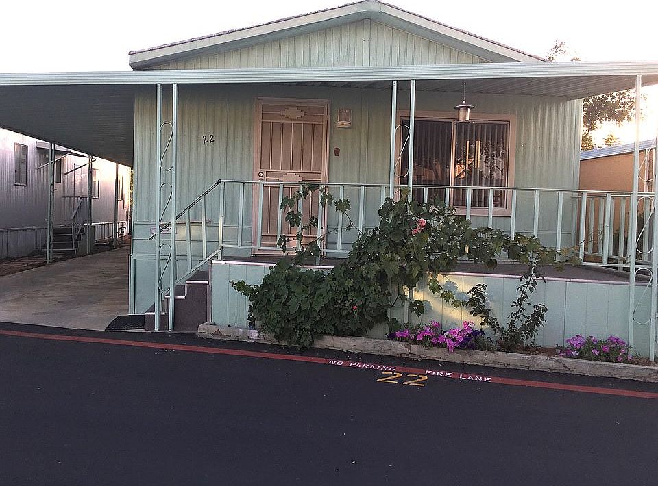 A beautiful Mobile home for sale in the heart of Santee, of off Mission Gorge Rd., large Master Bedroom and one other Bed room, 2 full Bath rooms, nice kitchen with all appliances, a good size laundry room with appliances, many Closets and Storage Cabinets, Central AC & Heating, new Laminate Flooring throughout, good size new Front Porch, 3 Cars Covered Carport, Back Yard with good Mature Fruit Trees, large Shed for extra storage! Enjoy all Amenities with this 55 year old + seniors (and 2nd or 3rd persons 35 year old and up) living community park have to offer for free to its residence; a beautiful air conditioned Club House, small Library, games & puzzles, sit and relax, free Bottled Water dispensing, free kitchen with appliances for small parties, also a Picnic Area with some outdoor games and a large Swimming Pool. Clean living, Paved roads, Super Quiet Community, Free Self-Car Wash area, Space fee is only $650 a month, including water, and garbage pickup twice a week. Asking Price is only $169,900 please Call or text Ron or Kay 619-390-3007 to make an appointment or for FaceTime Tour.