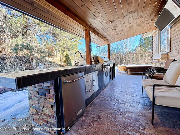 Enjoy massive sunset views above historic Meeker, Colorado from this large two story home located at the top of 9th street. The heated and covered outdoor kitchen is ready for the grill master in your family and the gas fire pit and cozy seating area make for perfect backyard entertaining year-round. The entry level of the home features a family room and large workshop storage room. The private main level master suite is complete with a walk-in closet with built-ins, attached bath and additional large south-facing bedroom that could be used as a nursery, office or gym. Upstairs the updated kitchen and dining area look out to the private backyard and outdoor BBQ kitchen. Down the hall are two large bedrooms, shared full bath, and a large living room with cozy gas fireplace. Fit and finish are excellent throughout the home with matching stained colonial panel wood doors and trim, stained and textured cement patio, and a stainless and granite kitchen. Enjoy an evaporative cooler in the summer months, large bright windows, luxurious wood blinds, and generous parking. A large storage shed with loft is accessed by a cement walkway inside the fenced backyard - perfect to store motorcycles and your toys.
