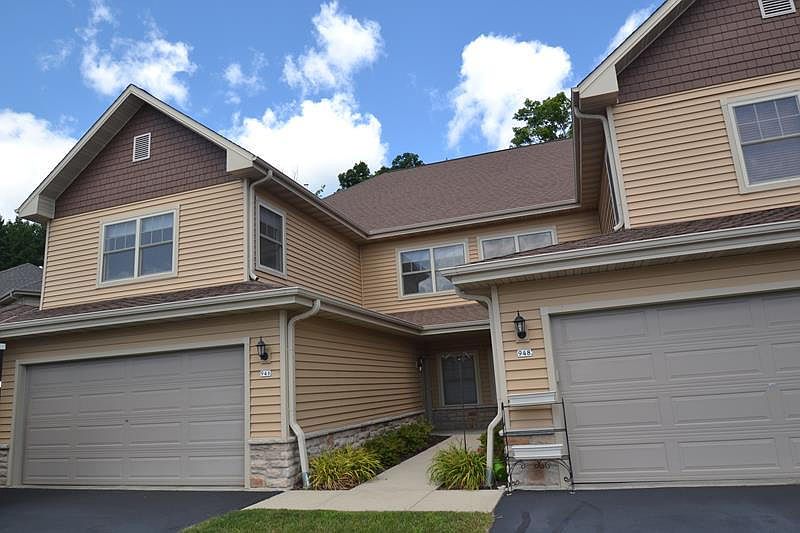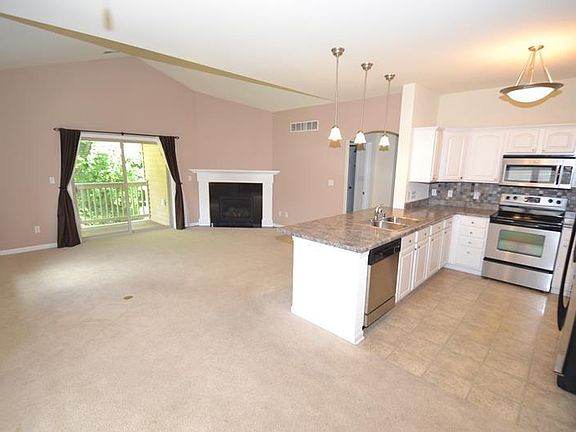 Beautiful open concept second floor unit with private entrance, vaulted ceilings, 2.5 car attached garage and spacious rooms with tons of storage. Additional features include a gas fireplace, snack bar, stainless steal kitchen appliances, master bedroom with large walk in closet and private bathroom, in unit laundry, forced air furnace and C/A and private covered balcony overlooking the 13 acre Braisure Woods Park! Low condo dues. 2 Pets permitted, but only one can be a dog (Certain breeds not allowed - See Executive Summary).