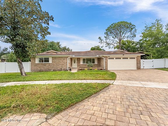 The bathrooms have been thoughtfully updated with elegant brown and dark green cabinets, adding a touch of depth and sophistication to the home's design. Energy efficiency is a plus, with 18 fully paid-off solar panels. Additional highlights include two parking spaces up front, a four-car enclosed garage with a dedicated boat garage, a private fenced yard, and a beautiful paver driveway.