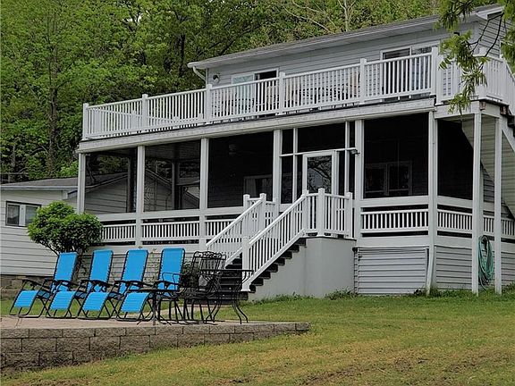 Welcome to your new lake-front home! Whether you are looking for a home or vacation rental property, look no further! This low maintenance, 3 bed, 2 bath house comes fully furnished and ready for you to move in. Enjoy your PANORAMIC VIEW of the main channel inside your screened-in porch or while roasting marshmallows over the firepit on your stone patio. Did I mention, a few steps down the gently sloping yard is a 2-well dock with swim platform? Perfect for all your water toys. Located at the 51 mile marker. Start enjoying lake life now! Come see this property today.
