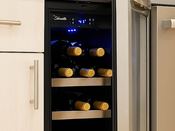 Huge windowsStainless steel appliancesWine coolerSubway tilesModern kitchenCaesarstone countertops