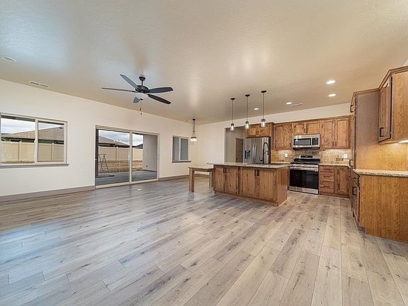 ***SOLD BEFORE PRINT*** NEW CONSTRUCTION by Aspen Leaf Innovations in Fruita's NEWEST filing of Orchard Ridge Subdivision! This quality-built home sits on a spacious 0.24-acre parcel. A thoughtful floor plan offers an open & bright layout and 4 spacious bedrooms to utilize! The covered entry way leads you a nice foyer area that opens to the large living and kitchen area. The living room offers a relaxing space, complete with warmth and ambiance of a linear electric fireplace with modern glass accents. Kitchen features premium cabinetry with under mount lighting, granite countertops, upgraded stainless Samsung appliances (refrigerator included!) and a coordinating tile backsplash. Enjoy a large pantry with hidden door entry with built-in shelving for additional storage! Adjacent dining area is the perfect space for gatherings and shared dinners! Upgraded lighting package throughout offers unique pendant lights and overhead lighting! Desirable split-level floor plan. Spacious primary bedroom which offers en-suite bathroom with dual vanities atop premium cabinetry with toe-kick under mount lighting include, large walk-in shower with custom tile and a LARGE walk-in closet to enjoy! Conveniently located laundry room offers functional utility sink. Enjoy all the AMAZING Grand Valley views from the covered backyard patio. 3-car attached garage has plenty of room for all your vehicles!