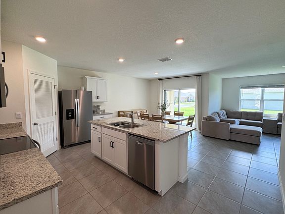 The home features a fully equipped kitchen with a refrigerator, range, oven, microwave, dishwasher, and garbage disposal. The primary bedroom, located away from the other bedrooms, features a walk-in closet and an a bathroom with dual sinks, a walk-in shower, and a private toilet room. The living area boasts a built-in entertainment center with an electric fireplace ideal for relaxing or entertaining guests. Central heating and air conditioning ensure year-round comfort, and additional features like hurricane shutters, a storm door, and an irrigation system offer added convenience and peace of mind. As an additional bonus, the community is currently developing a brand-new amenity center that includes a pool, splash pad, pickleball courts, fitness center, event lawn, and walking trails.