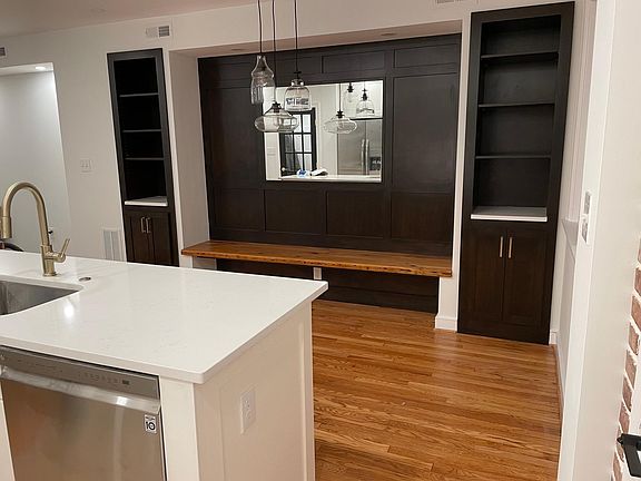Gorgeous three bedroom, 2 bathroom home with restored hardwood floors throughout, custom cabinetry, built in storage solutions, new and efficient appliances including an induction oven with built-in air fryer, dishwasher, and microwave; central AC and heat. Fully finished basement with laundry room with a custom-drop zone. Enjoy a covered porch, directly off the kitchen, as a nice area for outdoor dining and entertainment. Dedicated parking, and a one-car garage suitable for storage and with EV-ready 50 amp circuit for electric vehicles. Walk to newly developed shopping area, restaurants and grocery stores. Property is managed by owners who will care about you. Deposit required. Renter is responsible for electric and gas but water is included. Pets are not allowed. Renter is responsible for yard upkeep. No smoking in the property. Dedicated free parking. One-year lease required.