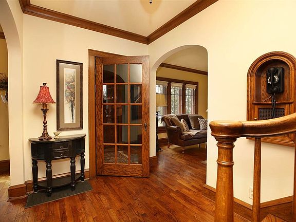 Stunning one-of-a-kind 3 story character home situated on a wooded ravine lot with tons of privacy. Tons of old world charm from wide wood moldings to leaded glass windows. Quality like this doesn't come on the market often. FR w/hardwood floors and gas FP flanked by built-ins. Kitchen w/ center island, white painted cabinetry, appliance package and eat-in dining area w/ patio doors to the outside deck w/ magnificent views. The 2nd level offers 3 bedrooms w/hardwood floors and a full BA. The 3rd level is the master retreat w/ large closets & full BA. 2 car garage. Close to downtown & parks.