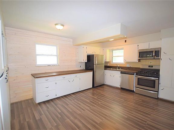 Welcome to 946 Kickapoo Avenue in Akron! Numerous updates have been made to this 3-bedroom, 1.5-bathroom home. Thespacious, eat-in kitchen has new beautiful vinyl flooring, new stainless steel appliances, gorgeous wood counter tops, a shiplapwall, and white cabinets. The living room has new carpet and fresh, neutral paint. All three bedrooms are a desirable size withnew carpet and paint throughout. Bathroom has a new toilet and sink. Large basement is partially finished and offers lots ofspace for recreation or for extra storage. Lovely covered front porch offers a perfect spot to sit and relax outside. New AC unitinstalled in 2019. Donât miss out on this home!
